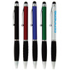 A dual-purpose plastic twist action pen featuring a soft stylus orb. The pen has dimpled ergonomic rubber grip. Stylus ball on the end of clip works great with your mobile device, iPad, tablet, or other tech devices. Enjoy the functionality and convenience this pen will bring. Comes with black ink.