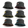 Premium cotton twill black bucket hat with coloured trim and a sweatband. The hat's material provides excellent UPF50 protection from the sun and complies with AS/NZS standards for sun protection. Bondi Bucket Hat is available in three sizes which will fit most people, including kids.