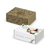 Professional custom gift box made from durable 1.5mm e-flute corrugated cardboard to provide reliable protection during transit. This box is perfect for gifting and building strong brand recognition. Featuring a convenient hinged lid, selected panels of the box can be customised with CMYK digital print. It is supplied flat-packed for easy postage and storage, and its self-locking design ensures hassle-free assembly. The assembled internal dimensions are 125mm x 97mm x 47mm (LxWxH).