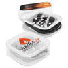 Handy set of earbuds which are presented in a smart carry case with a choice of three different bud sizes to ensure a comfortable fit. Branding is on the carry case.