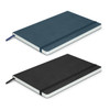 Affordable medium-size (approximately A5) notebook with a soft PU cover which thermo debosses to a stunning two-tone finish. It has 80 leaves (160 pages) of 70gsm lined paper, a bookmark ribbon and an elastic closure band.