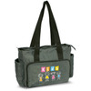 Luxury baby bag which is manufactured from trendy 190T patterned dobby polyester with a pongee lining. It features a heavily padded main compartment with a zippered closure which has one large padded inner pocket and two smaller unpadded pockets. Kinder has a large external pocket with a Velcro closure on one side and a large zippered external pocket with two inner pockets on the other. It has a removable foam-filled changing pad with a water-resistant PEVA surface that is easily wiped clean or washed. Other features include two padded end pockets for bottles and long woven handles so it can be carried on a shoulder.