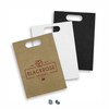 Large carry bag made from 180gsm paper with die cut handles. The handles and gusset are reinforced with 600gsm card for added strength. This bag is portrait orientated with handles and gusset along the shorter edges