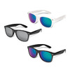 Retail quality fashion sunglasses with mirror lenses and an impact-resistant polycarbonate frame and arms which are fitted with CE standard 100% UV 400 lenses that provide both UVA and UVB protection. They can be supplied in an optional microfibre pouch.