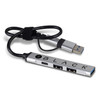 Convenient USB hub with three USB-A output ports and one Type-C output. Each USB-A output port provides up to 480MB/s data transfer speed and the Type-C output port provides up to 5GB/s. The Type-C input cable comes with a USB-A adaptor, so it is suitable for most PCs and laptops. A Velcro cable tie helps to keep the hub and cables together.