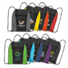 Premium drawstring backpack with a large zippered front pocket. It is manufactured from 210D polyester and has reinforced eyelets at the base for added strength.