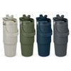 • Lid features two drinking options: a flip valve with a straw and a flip closure