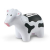 Cow shaped squeezable stress reliever made from soft polyurethane. Branding is available on the black spot on the back of the cow.