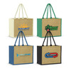 Extra-wide laminated jute tote bag with a large gusset and padded cotton handles. It is available in four colours where the gussets and handles are dyed to match.