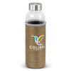 Deluxe 600ml borosilicate glass drink bottle which features an insulating soft poly jute sleeve that helps to keep drinks cool. The sleeve is fashion-inspired textured polyester outer. It has a secure screw-on stainless steel lid which can be laser engraved with a logo. Borosilicate is a lightweight glass that is exceptionally strong and shatter-resistant. Glass is a natural choice for a clean, pure taste and is a safe and reusable plastic alternative. This product is not intended to be used with carbonated or hot liquids. It is not dishwasher safe and handwashing is recommended.