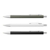 Retractable aluminium ballpoint pen with a debossed pattern on the grip, a matte lacquered barrel and shiny chrome accents. It has a blue large volume refill with 800 metres of writing ink and can be presented in an optional black pen sleeve.